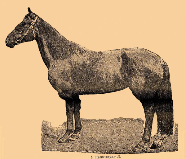 Калмыцкая — порода лошадей, живущих в степных районах к северу и северо-западу от Каспийского моря. Имеет крупную грубую горбоносую голову, , короткую шею с кадыком. Спина прямая, конечности крепкие, с развитыми мышцами. Масть обычно гнедая или бурая всех оттенков[1]. Лошади очень крепки, легки и быстры и, подобно киргизским, способны бежать без отдыха и корма до 100 километров[2]. Число их в XIX веке было не менее полумиллиона.