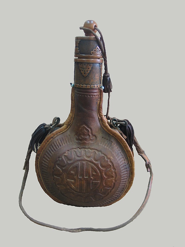 У калмыков, ведущих кочевой образ жизни, основным занятием было животноводство, и как его следствие – выделка шкур животных. Из кож изготавливали многие изделия, необходимые в быту кочевников: плети, уздечки, ремни, хомуты, сёдла. Из них также делали посуду: вёдра, корыта, фляги[1]. В целом обработка кож имеет схожие черты с промыслами других монголоязычных народов, и тем не менее калмыцкие изделия обладают самобытностью.