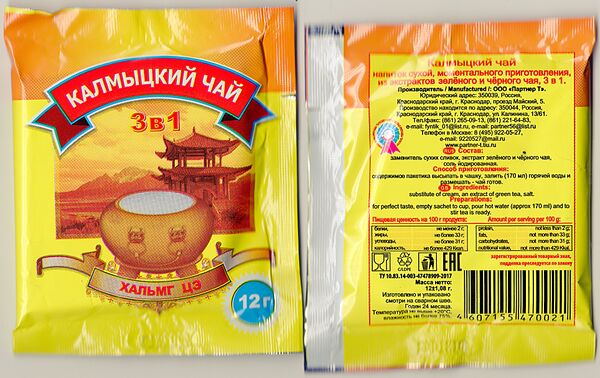 Калмыцкий способ приготовления чая схож с монгольским и частично с киргизским. Это один из древнейших способов, распространившийся на большой территории от пустыни Гоби и Чахара до ногайских степей междуречья Волги и Дона[3]. Калмыки привезли его из Джунгарии в XVII веке[1].