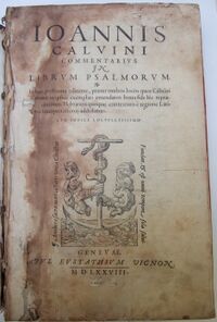 - Calvin, Jean. Commentarii Ioannis Calvini in quinque libros Mosis... Ed. 2-a priori longè emendatior ac locupletior... - Genevae [Genève] : excudebat Gaspar. de Hus, 1573. - [6] ff., 376, 698 pp., [13] ff.; 2°.