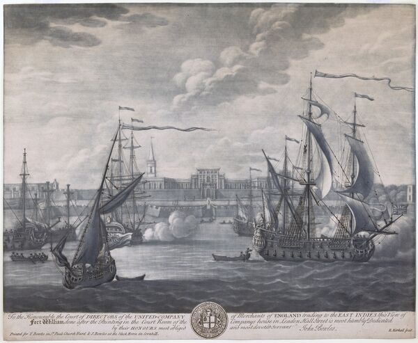В 1712 году англичане заканчивают строительство форта Уильям на берегу одного из притоков Ганга Хугли[14]. Из-за частых вооружённых стычек с французскими войсками, в 1756 году британцы провели ряд фортификационных работ по укреплению форта. В то же время наваб Бенгалии Сирадж уд-Даула осудил милитаризацию и уклонение от налогов со стороны Британской Ост-Индской компании. Его недовольство было проигнорировано, после чего были начаты военные действия. Форт был захвачен, большая часть защитников уничтожена. Данный инцидент вошёл в историю под названием калькуттской чёрной ямы. Силами наёмных солдат Британской Ост-Индской компании (сипаев) и регулярных войск под командованием Роберта Клайва в следующем году англичане вновь захватили Калькутту[15]. Согласно Аллахабадскому мирному договору, подписанному после поражения сил падишаха империи Великих Моголов, навабов Бенгалии и Ауда при Буксаре, за Ост-Индской компанией было закреплено право на управление и взимание налогов с населения Бенгалии, Бихара и Ориссы. За Великими Моголами сохранялась номинальная власть над данными территориями[16]. В 1772 году Калькутта становится столицей британских владений в Индии[17]. В 1793 году навабы окончательно теряют даже формальную власть над Бенгалией. Англичане проводят комплекс работ по осушению болот вокруг Калькутты. Особенно много для развития города и его архитектуры сделал генерал-губернатор Ричард Уэлсли[18]. Также Калькутта становится центром торговли опием[19]. В 1863 году генерал-губернатор Индии Джон Лоуренс принял решение о переносе летней столицы Британской Индии в более комфортабельный для англичан город Шимлу[20].