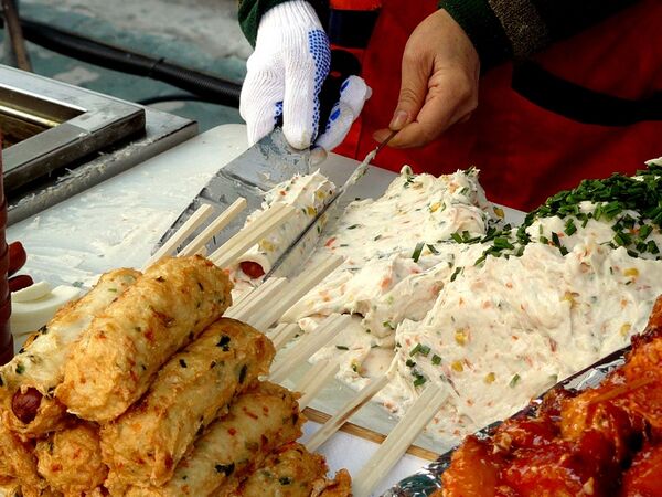 Омук часто готовится на вертеле в бульоне и продается на улицах, иногда вместе с омуком покупателю дают бульон в бумажных стаканчиках. Распространенная закуска под алкогольные напитки, особенно соджу.