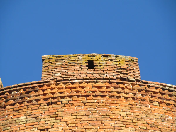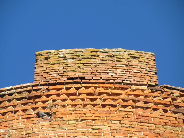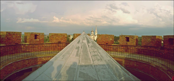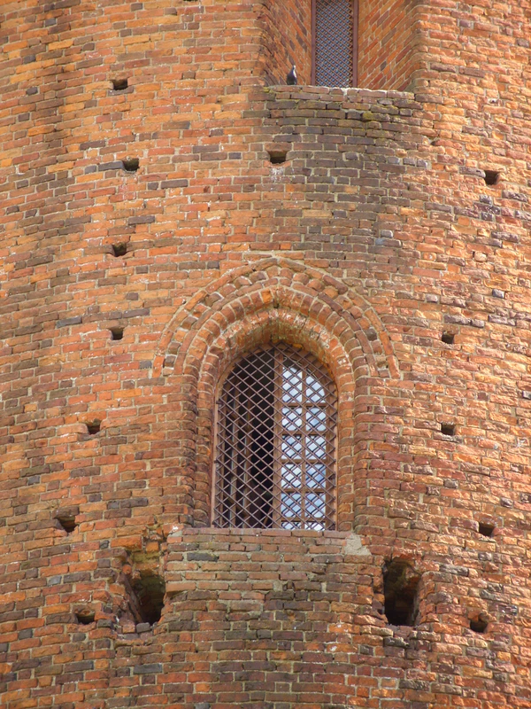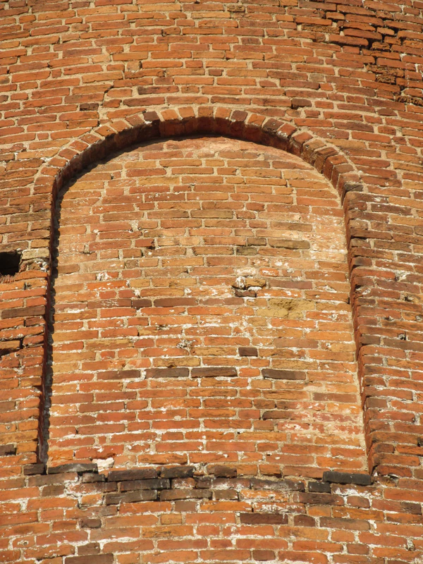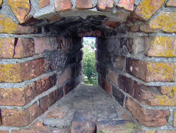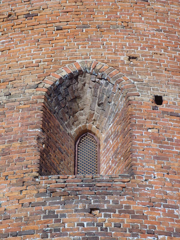 В толще стены пятого яруса начинается кирпичная лестница, которая освещается двумя узкими окошками и выводит на зубцы.