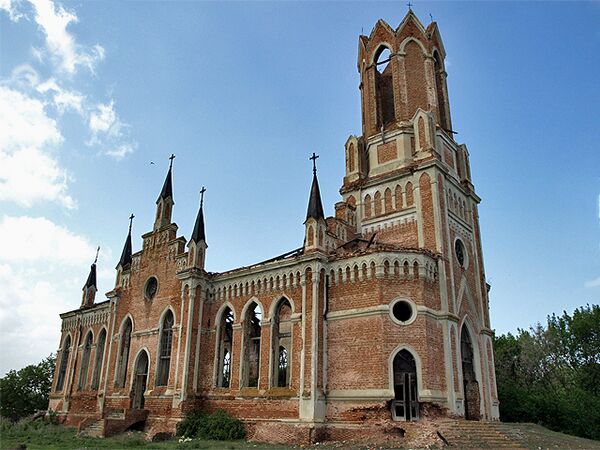 Сохранившаяся в Каменке католическая церковь является одной из главных достопримечательностей района. Первая деревянная церковь была открыта в 1797 году. Второе храмовое здание в истории поселения было построено в 1832 году. В 1890 году оно было разрушено (предположительно в результате пожара), после чего на протяжении 17 лет молебны совершались в переоборудованном доме. Новая и последняя церковь была построена из красного кирпича в неоготическом стиле в 1907 году. В годы советской власти здание использовалось в качестве склада и технического помещения тракторной станции[17]. Внутреннее убранство полностью утеряно, в 2004 году сгорели деревянные купол и крыша, однако само здание масштабных разрушений избежало.