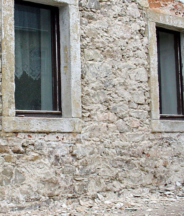 - Сплошная — несущая или самонесущая монолитная конструкция из камней, связанных строительным раствором.
