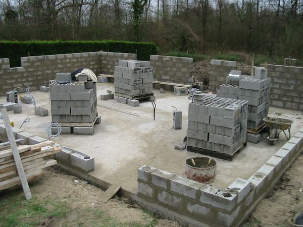 Кладка камней, изготовленных на тяжёлом бетоне, применяется в строительстве фундамента, стен подвалов и других подземных конструкций[~ 10].