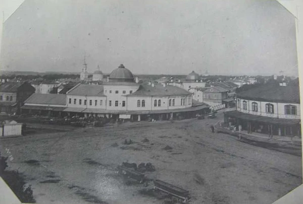 Был построен в 1789—1791 годах по проекту губернского архитектора П. Т. Бортникова. Рядом с мостом были возведены четыре круглые трёхэтажные башни (две южные и две северные) и примыкавшие к ним торговые помещения со ступенчатыми фасадами. Все эти сооружения входили в единый архитектурный ансамбль. В 1820-х, ко всем четырём башням вдоль реки были пристроены торговые ряды[2]. В конце XIX века, в связи со строительством гостиниц «Эрмитаж» и «Пассаж», обе южные башни были разобраны.