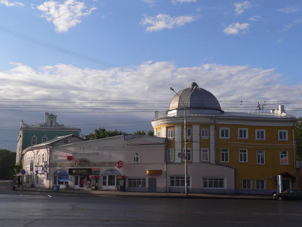 Здание «Эрмитажа» было построено в 1903—1904 годах каменных дел мастерами К. А. и Н. К. Масленниковыми под руководством губернского архитектора Николая Евстафьевича Анохина. Часть здания на месте лавок купчихи Евгении Александровны Ульевой была пристроена в 1954—1955 годах Вологодской областной проектной конторой (инженер Михаил Васильевич Дикарёв). В данный момент в нём располагается администрация города Вологды[3].