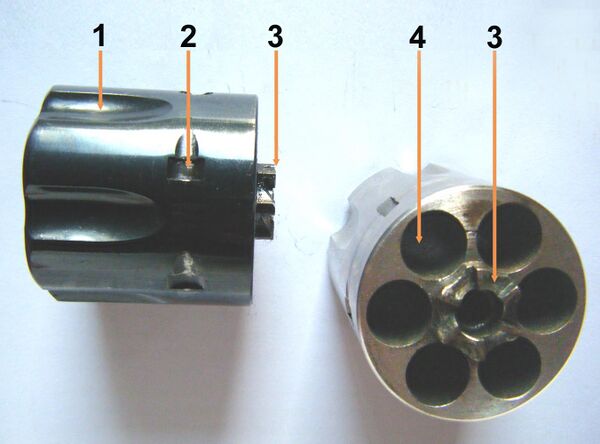 - Цилиндрический канал в револьверном барабане, служащий для размещения патрона (заряда).
