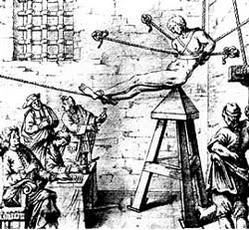 В течение сорока часов я был вздёрнут на дыбу с вывернутыми руками, и верёвки рассекали мне тело до костей, и острый кол пожирал, и сверлил, и раздирал мне зад и пил мою кровь, чтобы вынудить меня произнести перед судьями одно только слово, а я не пожелал его сказать, доказав, что воля моя свободна[56].