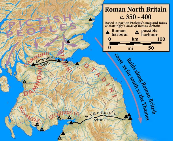 Во время правления императора Валентиниана I провинции Римской Британии фактически погрузились в хаос. Коррумпированные военачальники прибирали к своим рукам почти все деньги, присылавшиеся из Рима для выплаты войскам жалования, в результате чего росло недовольство солдат, служба которых плохо оплачивалась, и многие из них дезертировали. В довершение варвары Каледонии временно заключили всеобщий мир между собой, прорвали лимесы империи и начали крупное наступление на римские территории, доходя вплоть до Кента (современная южная Англия). Погромы, учинённые каледонцами, были разрушительными, и, по словам очевидцев, имели место акты каннибализма со стороны аттакотов (по отношению к солдатам Валентиниана).