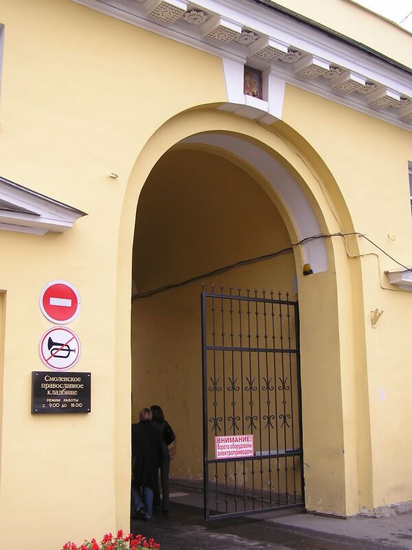 - Смоленское православное кладбище (Главный вход — здания богадельни, соединённые аркой, дом 24)