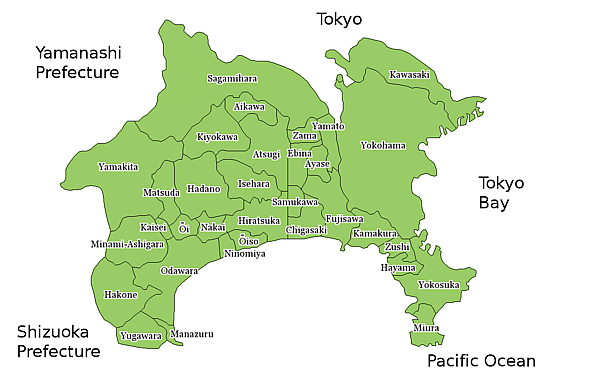 - 神奈川県 (яп.). Geospatial Information Authority of Japan. — Географические координаты населённых пунктов префектуры Канагава. Дата обращения: 23 июля 2010.