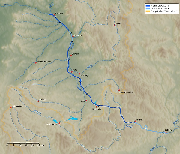 Начинается от города Бамберг, протекает через Нюрнберг и соединяется с Дунаем у города Кельхайм.