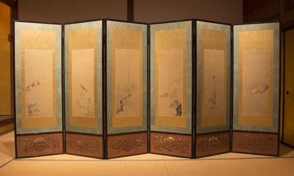 Кано Танъю работал со множеством стилей и форм, но наиболее известны стали масштабные произведения. Это ширмы и раздвижные двери и панели в стиле периода Момояма с изображением природных сюжетов — тигры, цветы и птицы, растения и другие, созданные при помощи позолоченной бумаги и ярких красок[6]. Золото часто использовалось им для изображения облаков, воды и других элементов фона; золото отражало свет, попадавший в помещение и делало тёмные комнаты замка светлее. При этом работы Кано Танъю, в связи со строгим режимом сёгуната Токугавы, стали более сдержанными, чем работы «старых мастеров» Момоямы[7].