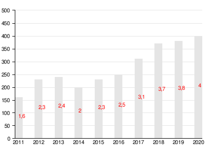 Примечание: в 2011—2019 годах капитал указан по состоянию на март соответствующего года, в 2020 году — на апрель[11].