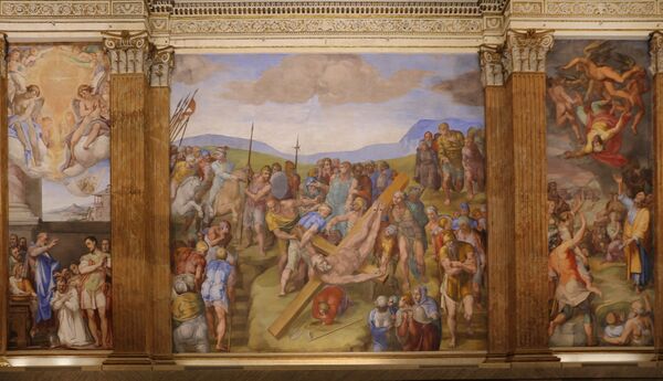 Фрески великого Микеланджело в Капелле Паолина созданы в кризисный, поздний период его творчества. Б. Р. Виппер посвятил этим фрескам развёрнутый стилевой анализ, он писал: