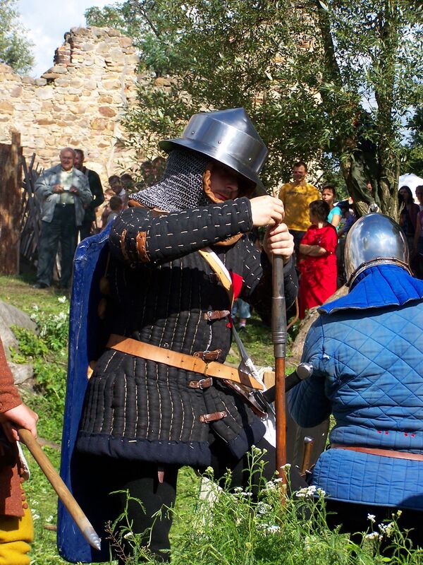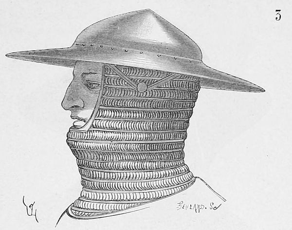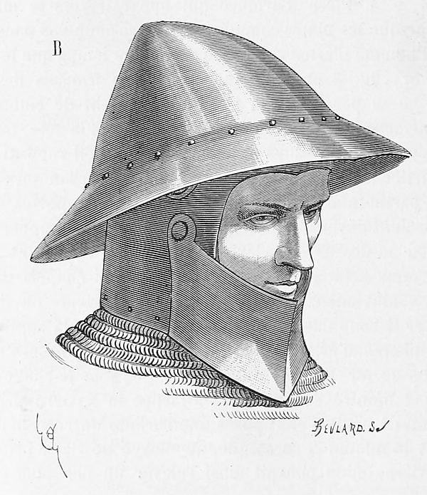 Иногда капеллину дополняли металлическим нашейником, который закрывал и нижнюю часть лица. Особенно это было характерно для конных воинов.
