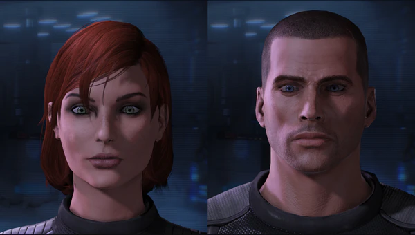Первоначально броня Шепард(а) должна была быть белой с красными полосами, но разработчики от этой идеи отказались, так как данный дизайн не подчёркивал характер героя, и в этой броне он казался медиком[14]. Вместо этого было принято решение сделать потёртую броню тёмного оттенка и с символом «N7», чтобы подчеркнуть его целеустремлённость. Красная полоса на костюме должна была символизировать кровь ― жертву, которую способен принести Шепард для спасения галактики[14][78]. В Mass Effect 2 броня стала модульной и её можно было изменять, присоединяя к ней новые части. Это было сделано, дабы подчеркнуть силуэт персонажа и показать его более выносливым и сильным[79]. Разработчики старались сделать качественную систему редактирования лица главного героя. BioWare сделала упор на реализм, чтобы игрок мог создать персонажа, выглядящего естественно. По словам Кейси Хадсона, это было также сделано, чтобы части лица персонажа не проходили сквозь его шлем. Чтобы протестировать работу кастомизации, разработчики пробовали создавать знаменитостей в редакторе, чтобы убедиться, что система настройки персонажа позволяет создать множество разнообразных лиц[73].