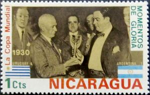 Хотя это стало традицией в последующих розыгрышах, первый трофей чемпионата мира не был вручен капитану сборной. В 1930 году, после победы Уругвая над Аргентиной в финале, Хосе Насасси, лидер команды, не получил трофей от Жюля Риме, его получил президент Уругвайской ассоциации Рауль Худе[1].