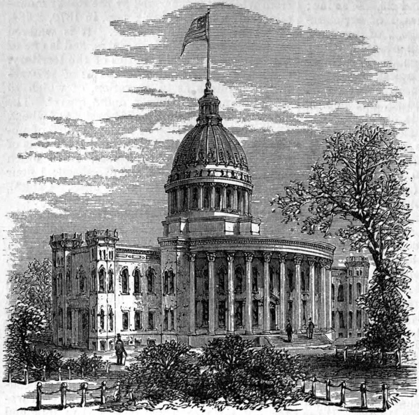 В 1836 году была образована территория Висконсин. Сначала её столица была в Белмонте, а в 1837 году было принято решение о переносе её в Мадисон. В том же году началось строительство первого Капитолия Висконсина, которое обошлось в 60 тысяч долларов. Впоследствии этот Капитолий прослужил до 1869 года, причём начиная с 1848 года Висконсин был уже штатом США[2].