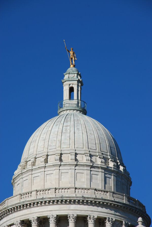 На вершине купола находится статуя из позолоченной бронзы Independent Man («независимый человек», высота 3,3 м, вес более 225 кг), изготовленная по дизайну скульптора Джорджа Брюстера (George Brewster)[3]. Эта статуя была установлена 18 декабря 1899 года[5]. В 1927 году она была повреждена молнией, и после этого зафиксирована 42 медными скобами[6]. В дальнейшем она ремонтировалась в 1951 году, а 9 августа 1975 года была спущена с вершины Капитолия для капитального ремонта, включая замену позолоты. Статуя была возвращена на вершину купола 20 июля 1976 года[6].