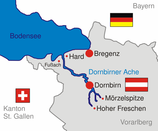 Дорнбирн расположен в современной австрийской провинции Форарльберг, примерно в 12 км к югу от Брегенца на восточной оконечности Боденского озера.