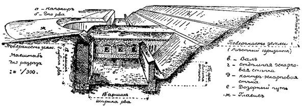 Кроме собственно капониров имелись следующие фланкирующие сооружения этого типа: