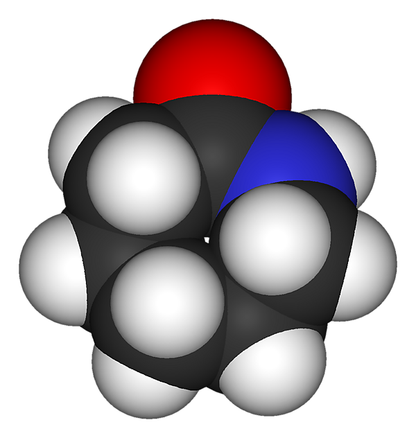 Белые кристаллы, хорошо растворимые в воде, спирте, эфире, бензоле. Капролактам — циклический амид ε-аминокапроновой кислоты. В промышленности для производства капролактама исходным сырьём служит бензол. При нагревании в присутствии небольших количеств воды, спирта, аминов, органических кислот и некоторых других соединений капролактам полимеризуется с образованием полиамидной смолы, из которой получают волокно капрон.