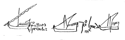 - Каравелла-латина — косые латинские паруса на всех мачтах.