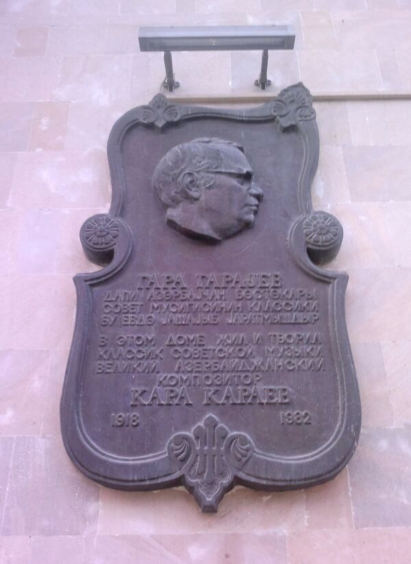 - 20 июня 2014 года в Москве в Трёхпрудном переулке, 11/13, в доме, где с 1973 по 1982 год жил Кара Караев, была открыта мемориальная доска[12] (авторы — скульптор Г. Хагверди и архитектор П. Козлов)