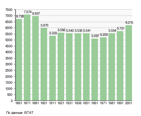 Население составляет 6610 человек (2008 г.), плотность населения составляет 161 чел./км². Занимает площадь 41 км². Почтовый индекс — 12023. Телефонный код — 0171.