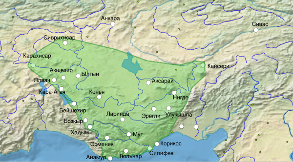 Территория бейлика Караманидов при Ибрагиме (умер в 1464 году) |