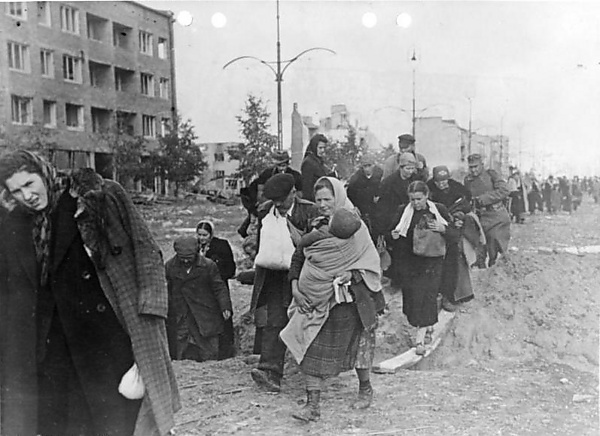 Со 2 августа немцы изгоняли польское население из захваченных ими кварталов Варшавы. Казармы СС на ул. Раковецкой, 4 (так называемые SS-Stauferkaserne)[Примечания 2] были превращены тогда в импровизированную тюрьму. Там держали в основном мужчин, к которым относились, как к заложникам, и содержали в лагерном режиме[49]. Заключённые получали минимальное питание (для примера, первую группу заключённых держали без пищи весь первый день). Избиения были постоянными[50]. Задержанных мужчин заставляли работать до изнурения, в частности, чистить туалеты голыми руками, разбирать повстанческие баррикады, чистить танки, убирать трупы, выполнять земляные работы на территории казарм, очищать улицы или переносить и грузить на автомобили украденное немцами имущество. Целью многих из этих работ было только утомить и унизить задержанных[51]. Тяжёлые условия жизни и труда привели у полному истощению заключённых за короткий срок. Произошла, помимо прочего, вспышка дизентерии[50].