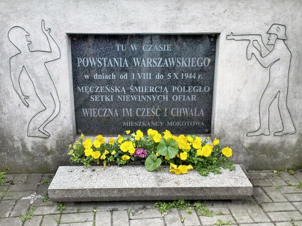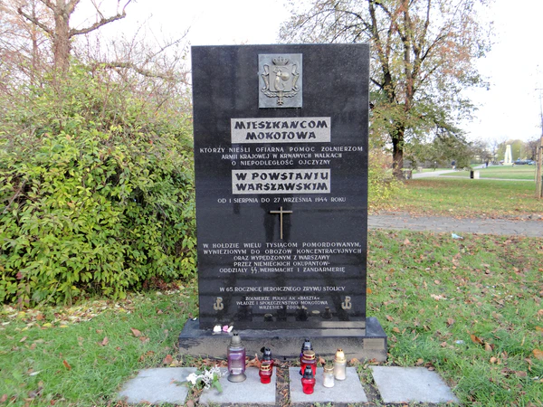 В последующие дни немцы по-прежнему поджигали дома и выселяли население из захваченных ими кварталов Мокотова[45]. Имели также место случаи расстрела мирных жителей. 11 августа было уничтожено около 20 жителей дома № 132/136 на площади Независимости (в том числе несколько женщин)[46]. 21 августа были расстреляны около 30 жителей дома на ул. Мадалиньского, 39/43, а на следующий день — 7 жителей дома на ул. Келецкой, 29А[47]. Существуют также сведения, что на рубеже августа и сентября 1944 года в районе садово-огородных участков на Раковецкой немцы расстреляли около 60 гражданских лиц, включая женщин, стариков и детей[48].