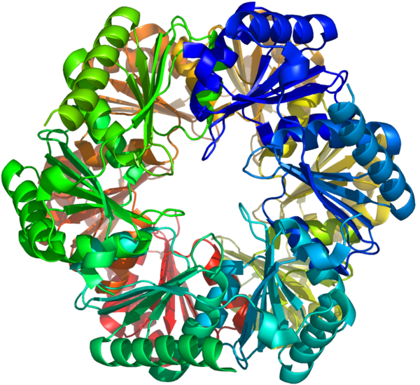 Рентгеноструктурный анализ показал, что внешняя оболочка карбоксисомы состоит из шестиугольных белков[9]. У разных видов бактерий α-карбоксисомы построены из разного количества видов белков, от 8 до 11. Основную структурную функцию в α-карбоксисомах несут белки CsoS1A, CsoS1B и CsoS1C, однако, поры в них слишком малы, чтобы обеспечить диффузию субстрата. Это маленькие белки весом от 10 до 11 кДа. Белок CsoS1D имеет поры, способные открываться и закрываться, которые служат для облегчения поступления субстрата (бикарбоната и рибулозо-1,5-бисфосфата), и выхода продуктов реакции (3-фосфоглицерат). Положительно заряженные остатки аргинина способствуют диффузии несущих отрицательный заряд продукта и субстрата. Другие малочисленные компоненты представляют собой пятиугольные белки CsoS4AB, располагающиеся по углам икосаэдра. Фиксация Рубиско осуществляется посредством взаимодействия белков оболочки карбоксисомы с её малой субъединицей.