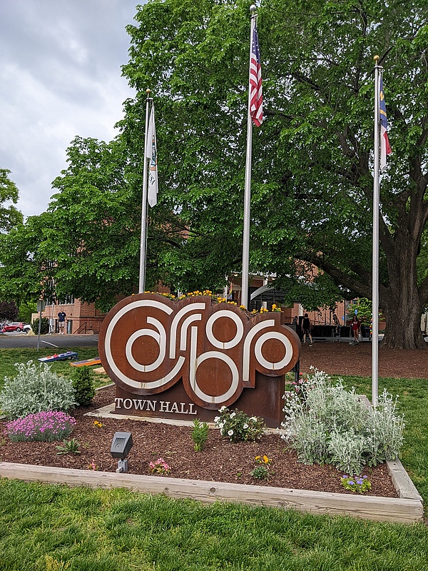Город был назван в честь Джулиана С. Карра — выпускника, попечителя и почётного доктора Университета Северной Каролины, промышленника и филантропа, чья компания провела в город электричество. Однако Карр был также сторонником превосходства белых, выступал против избирательных прав чернокожих, защищал Ку-клукс-клан и линчевания, поддерживал идеологию «потерянного дела» Конфедерации и сам воевал в рядах армии Юга. В 2019 году в городе был установлен информационный щит, дистанцирующий муниципалитет от взглядов и поступков Карра[2]. В 2017 году городской совет Карборо принял резолюцию с призывом к демонтажу памятника Silent Sam[3].