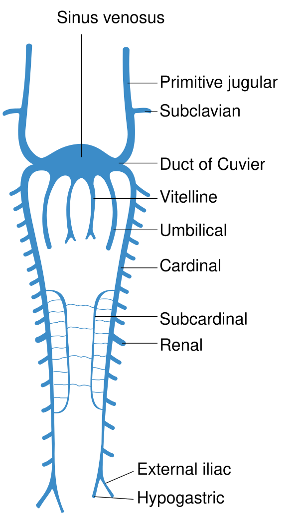 Передние кардинальные вены у высших позвоночных преобразуются во внутреннюю яремную вену (Venae jugularis interna). Задние кардинальные вены у наземных позвоночных редуцируются, и их функцию выполняет нижняя полая вена.