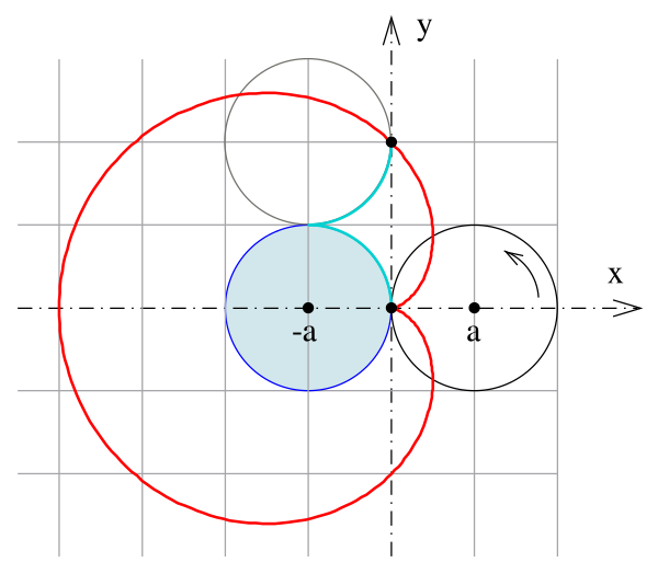 Пусть — радиусы окружностей, начало координат находится в крайней правой точке горизонтального диаметра неподвижной окружности (см. рисунок). Тогда уравнения кардиоиды можно записать в следующих формах[2]: