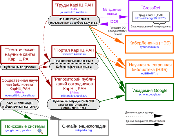 - Крижановский А. А., Сорокин А. Д., Лебедев В. А., Ямса Э. В., Старкова В. Г., Новикова Ю. А., Чирков А. В., Крижановская Н. Б., Чиркова Ю. В. Электронные текстовые ресурсы и долговременное хранение данных в Карельском научном центре РАН // Электронные библиотеки : журнал. — 2016. — Т. 19, № 4. — С. 305—367. — ISSN 1562-5419.