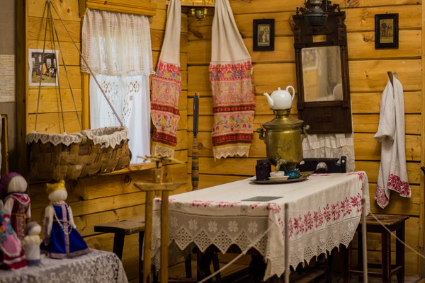 В экспозиции представлен интерьер карельской избы, который имел некоторые отличия от избы русского крестьянина.[3]
