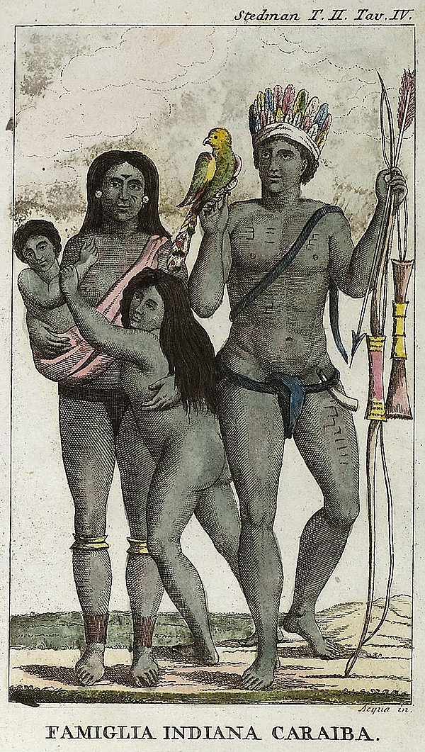 Карибы считались воинственными и агрессивными, хотя по числу воинов и вооружению не превосходили соседей. Тем не менее во времена Колумба они оказывали ожесточённое сопротивление испанцам. В отличие от проживавших в том же регионе араваков карибы практиковали каннибализм[4]. Некоторые Малые Антильские острова (Сент-Винсент, Сент-Люсия, Доминика), из-за сопротивления карибов, европейцам удалось колонизировать только к концу XVII века.