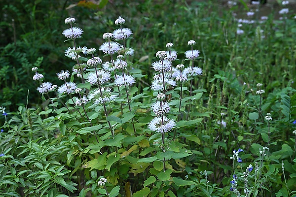 Редкий в культуре мощный вид, в природе встречающийся в Японии, высотой до 1,3 метров. Особую декоративность ему придают изящные, свисающие голубые цветки с длинными, загнутыми в завиток тычинками, за что растение называют «бородатым цветком». Цветёт с августа по октябрь. Отличается эффектным габитусом, душистой листвой и достаточной зимостойкостью[4][6].