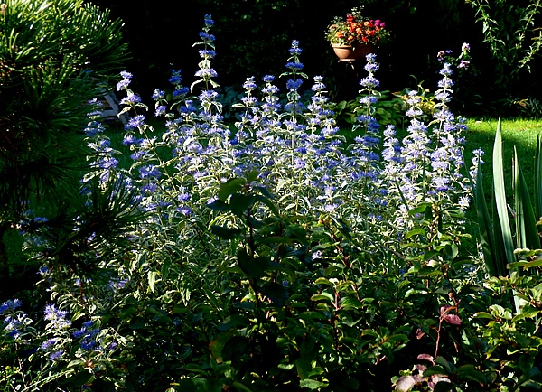 | Grand Bleu | Плотный, шаровидный куст до 1 м. Цветки тёмно-синие, листва серебристо-зелёная, ароматная. |