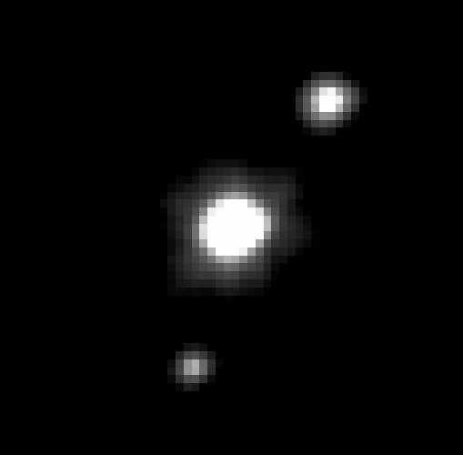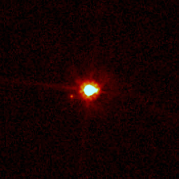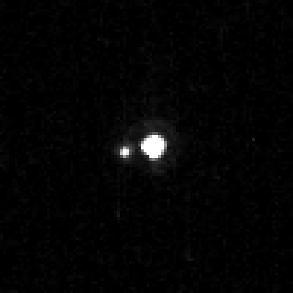 - Харон, по причине его большой массы по сравнению с Плутоном, обращается с Плутоном вокруг общего центра масс, расположенного в пространстве между Плутоном и Хароном, а не вокруг точки, находящейся внутри Плутона[13].
