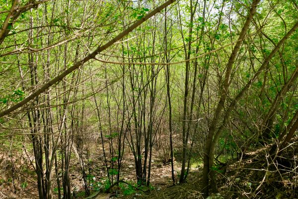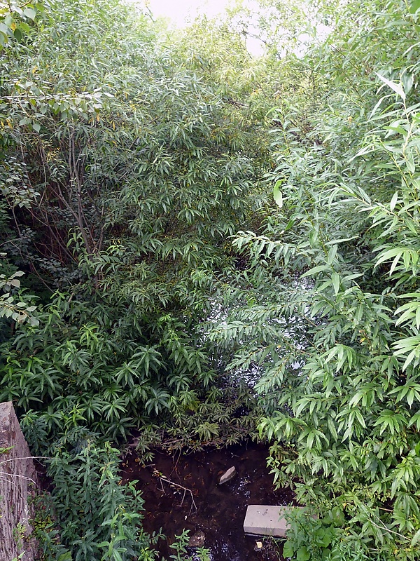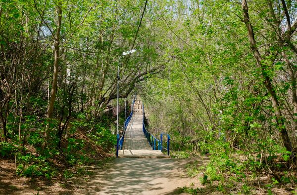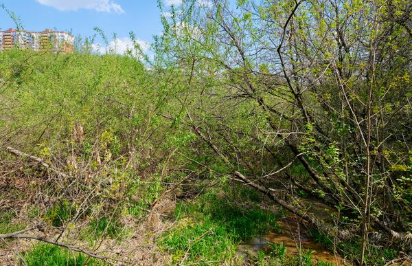 Заросшее русло Карлутки и пешеходный мост в районе ул. Ленина