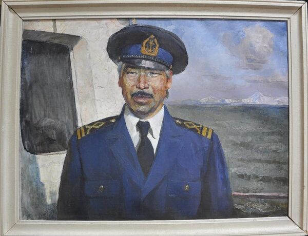 На полотне представлен полупортрет мужчины средних лет. Туловище повернуто вправо, голова — примерно на треть вправо. Руки сложены на груди перед собой. У мужчины густые длинные волосы, зачёсанные назад, чёрные усы и широкая седая борода. Он одет в белую рубашку и тёмный жилет, а галстук выполнен в виде завязанной под воротник шелковой чёрной ленточки. Поверх жилета надет коричневый сюртук. Фон картины тёмно-серый.