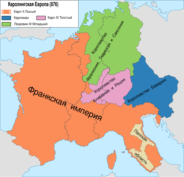 Карл, сын Людовика I Благочестивого от его второй жены Юдифи Баварской, был поздним ребёнком: он родился, когда старшие братья его были уже взрослыми людьми, получившими каждый долю в империи. Выделить новое королевство младшему сыну Людовик Благочестивый мог, только отобрав какие-то земли у старших. Передел привёл к ссорам и распрям в императорском семействе, что ускорило распад империи.