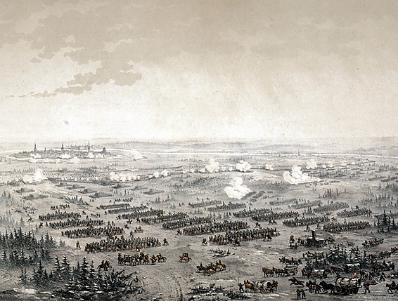 Вторгнувшись в Шведскую Прибалтику летом 1700 года, русские войска под командованием Петра I осадили стоящие рядом крепости Нарва и Ивангород с единым гарнизоном. В ответ на это ведомый Карлом шведский экспедиционный корпус, удачно выведший из войны Данию, морем переправился в Пярну (Пернов) и двинулся на помощь осаждённым. 30 ноября Карл решительно атаковал русскую армию с оставленным Петром I на командование фельдмаршалом де Круа при Нарве. В этом упорном сражении русское войско значительно превосходило шведскую армию (10,5 тысяч при 37 пушках[11] у шведов против 34—36[12] тысяч русских при примерно 180 орудиях). Наступая под прикрытием снежной пурги, шведская армия, сформированная в несколько колонн, вплотную подошла к русским позициям, растянувшимся на 7 вёрст тонкой линией перед стенами Нарвы, и короткими ударами прорвала центр русского боевого порядка. После этого армия Карла развернулась в две стороны и заработала пиками и шпагами, штыками и багинетами. Среди русских солдат началась паника, поднялся слух, что иностранные офицеры предали их. Командующий де Круа и многие иностранные офицеры, спасаясь от избиения собственными солдатами, сдались шведам. Центральная часть русских войск начала беспорядочный отход к своему правому флангу, где находился единственный понтонный мост, который не выдержал большого скопления людей и рухнул, многие утонули. Преображенский, Семёновский и Лефортовский полки, к которым присоединилась часть бегущих солдат, на правом фланге сумели отбить атаки шведов, устояла и пехота на левом фланге, но положение было критическим. Фланги были разъединены, их командиры не знали, что происходит друг у друга, главное командование попало в плен. Сражение завершилось капитуляцией русских войск ввиду их полного разгрома. Шведские потери составили до 2 тысяч человек убитыми и ранеными. Потери русской армии точно не выявлены, но по некоторым шведским оценкам они составили убитыми около 8 тыс. человек, ещё около 1 тысячи утонуло и неизвестное количество скончалось от ран при отступлении[13][14]. Была потеряна вся артиллерия, в плен попало 700 человек, в том числе 56 офицеров и 10 генералов. По условиям капитуляции русским частям, кроме сдавшихся в плен во время боя, было разрешено отступить с оружием, знамёнами и обозом.