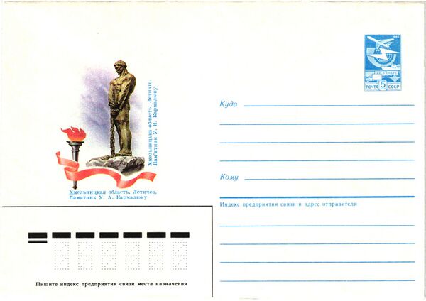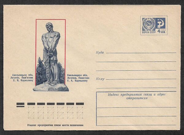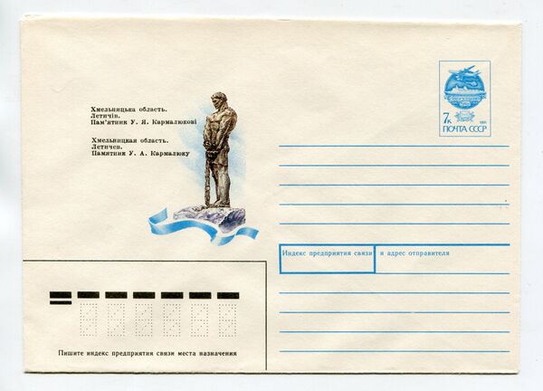 - В 1986 году выпущены почтовый художественный маркированный конверт и спецштемпель, посвящённые У. Я. Кармалюку, а в 1975, 1985 и 1991 годах — памятнику У. Я. Кармалюку в городе Летичеве.